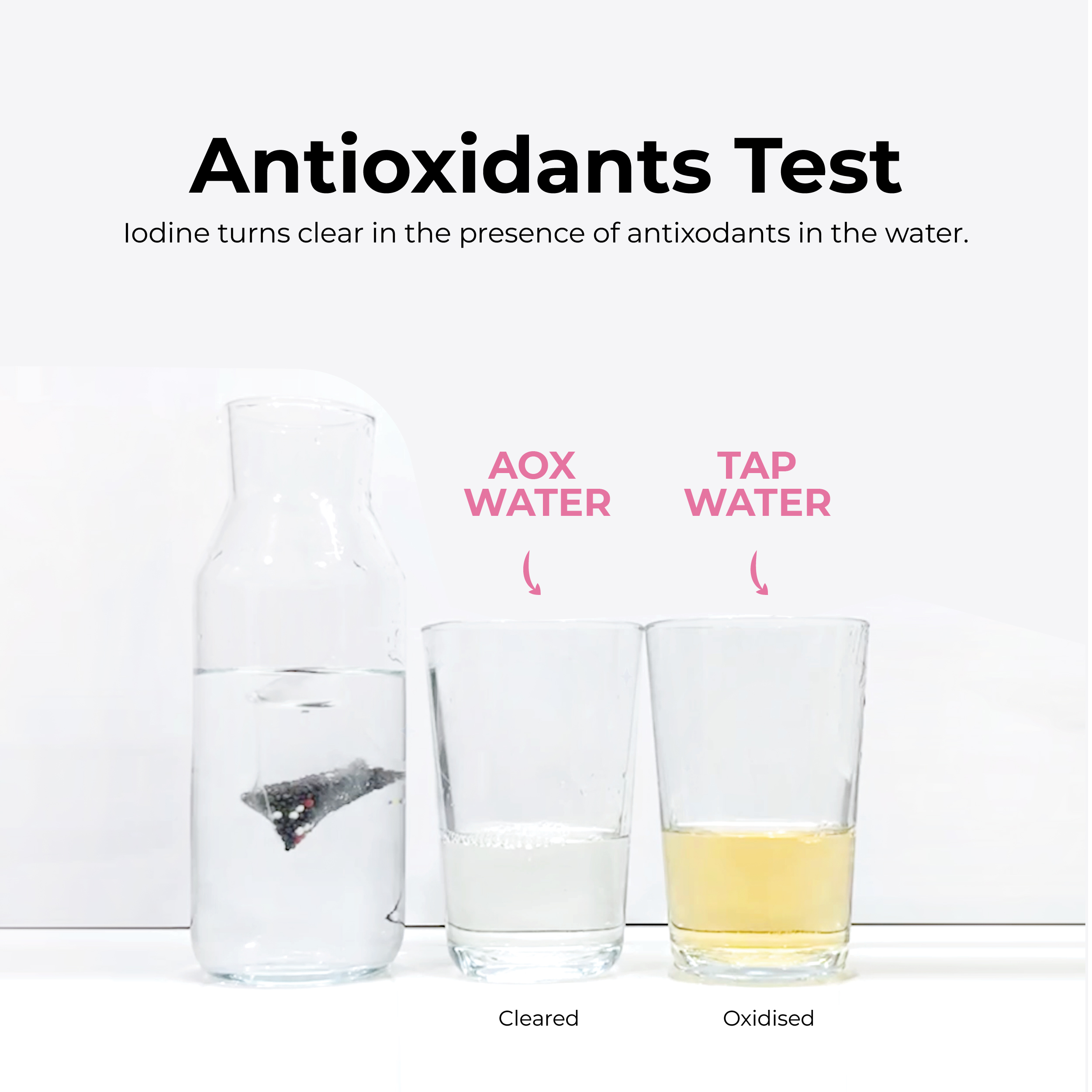 AOX alkalises your water so your drink is capable of restoring your body pH balance and flush acidic metabolites and toxins from the cellular level.