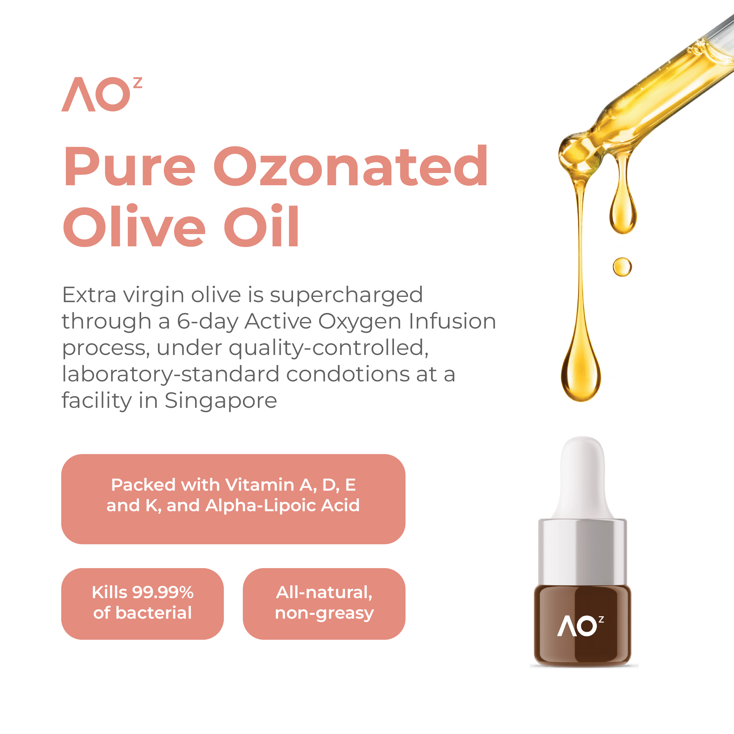 - Mix 1 nano-spatula of AOᶻ Nano Pearl Powder with 5 drops of AOᶻ Defy Ageing Ozonated Olive Oil.