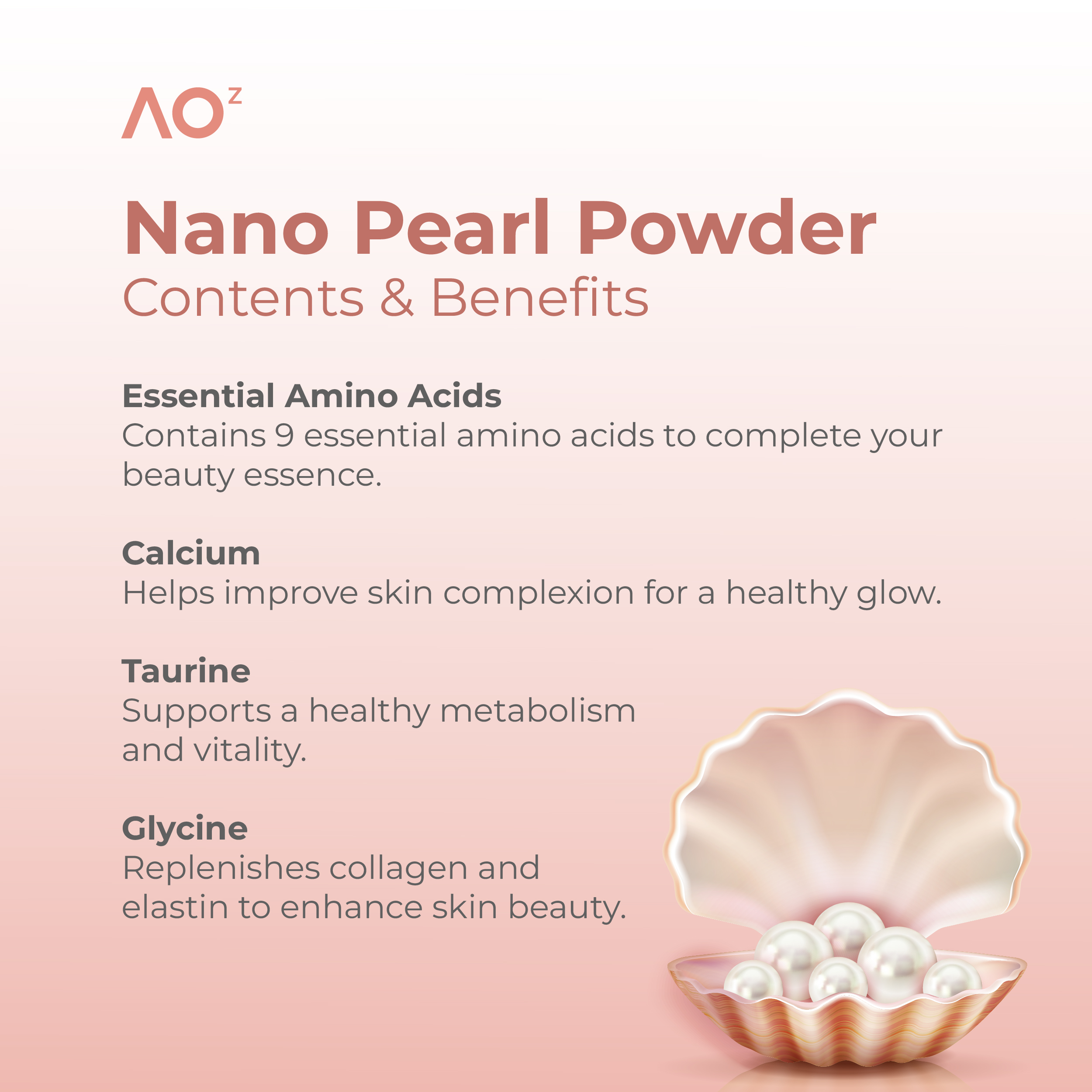 For centuries, pearl powder has been treasured as the timeless beauty secret of royalty. Today, modern science meets ancient tradition in AOᶻ Nano Pearl Powder — an ultra-fine, nano-sized formulation that penetrates deeper into the skin for visible and long-lasting radiance.